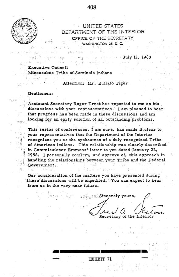 - Miccosukee Tribe Confirmation of US Recognition